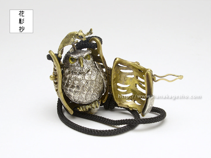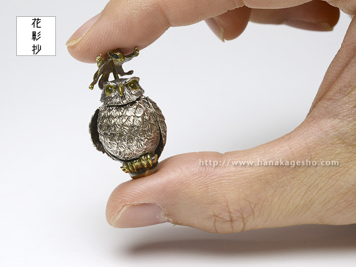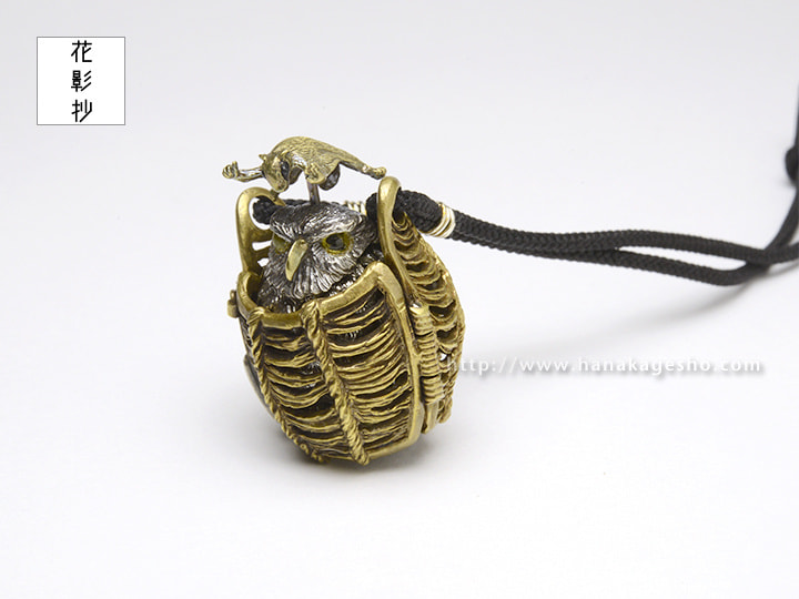 ふくろうとフクロモモンガの福づくしの提げです。モモンガを押すと羽がパタパタします。(罠兎)