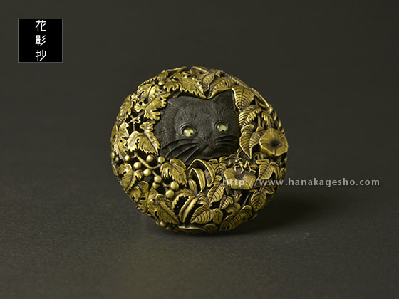 Kagamibuta Ryūsa Netsuke "Yabu Neko" (Cat Hiding among Bushes)