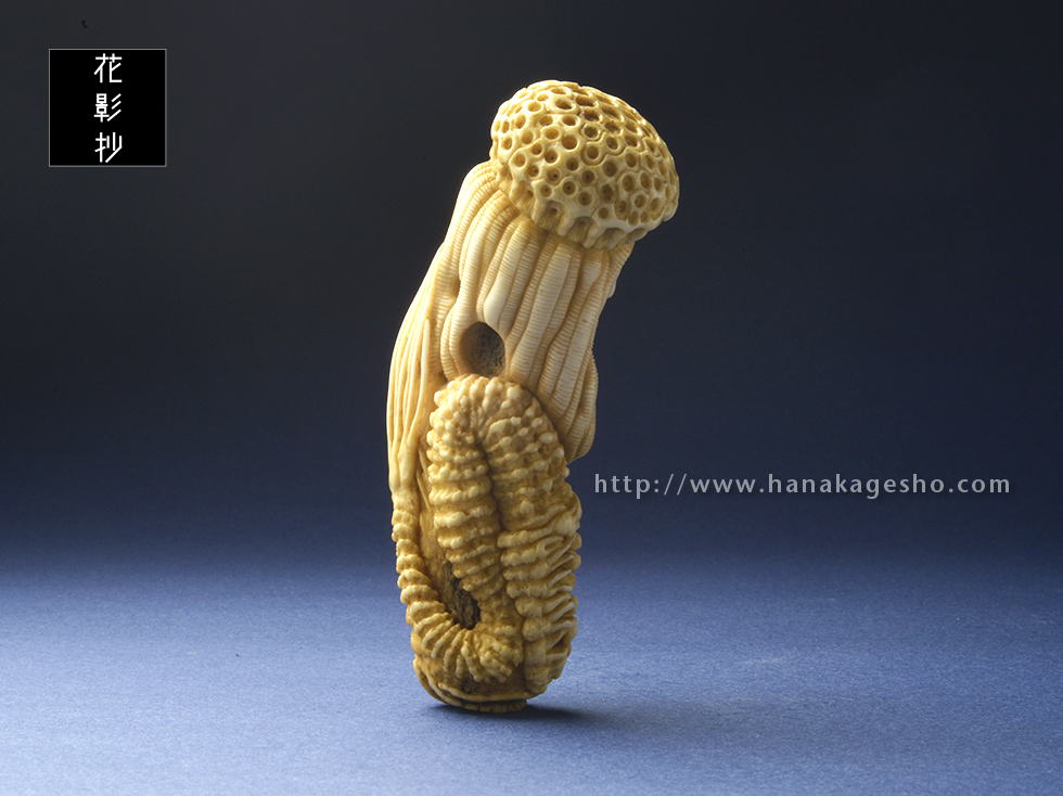 海へ帰ろう。とわに...いっしょ...。変わってしまった浦島太郎と乙姫は一緒に暮らしましたとさ。おしまい。大きい型彫り根付。 (ダゴンとハイドラは、クトゥルフ神に仕える一族の王と女王的な存在。)