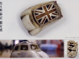 『根付』と聞くと、多くの方々にとって骨董品の根付が、まず脳裏に浮かぶと思いますが、泰宏の制作する根付は、昔ながらの「根付」のイメージを大きく覆すものです。いわゆる「古根付」の愛好家の方からは、戸惑いの声があがるかもしれません。しかしながら、根付作品の魅力が、今を生きる鑑賞者の手の中で、触れられ、転がされる中で発揮されるものであるとするならば、作品の題材は「今のもの」であったほうが、見るものに訴えかけるのではないか。泰宏がモチーフに選ぶのは、イギリスの有名なデザインの車であったり、カメラであったりします。作品から受ける印象は、非常にカラッとした空気感です。そのことは、泰宏がモーターショーなどの展示会場のデザインなどの仕事に長く関わってきたことと、無関係ではないでしょう。作品の持つ風通しの良さのような感覚は、そんなところからくるのかもしれません。