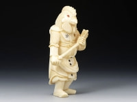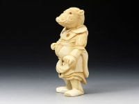 今回、いわゆるリリース作品を取り扱うことになりました、阿部賢次さんは通常、私どものギャラリーで取り扱っている作家ではなく、他のディーラーや店舗にて、現在も新作を意欲的に発表しておられる作家です。そういったことを考えると阿部さんの旧作を私たちのギャラリーで取り扱うことが可能なのか?たいへん迷う部分がありました。しかしながら、現在ほとんど機能していない「現代根付作品の二次マーケット」の問題を考えた時に、小さな企画ではありますが、このような展覧会、あるいは場所も今後は必要になってくるのではないか、という考えが次第にまとまり、この展示販売会の開催となった次第です。