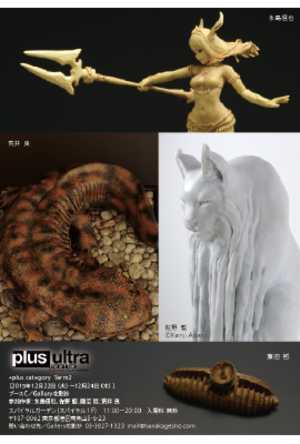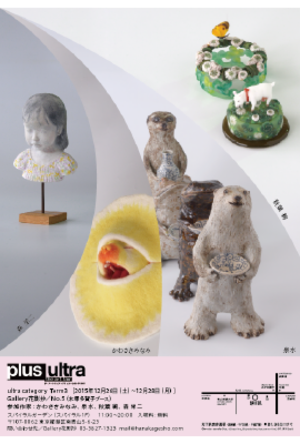 今回、プリュスカテゴリーではギャラリーでは初めての試みの展示などもあり、見ている方が楽しんでくださるような展示を目指していきたいと思っております。ウルトラカテゴリーは昨年と一緒のメンバーではありますが、昨年とは違ったタイプの新作を展示したいと思っております。年末のお忙しい時期ではありますが、どうぞ表参道まで足をお運びくだされば幸いです。
