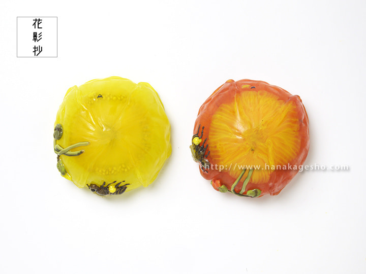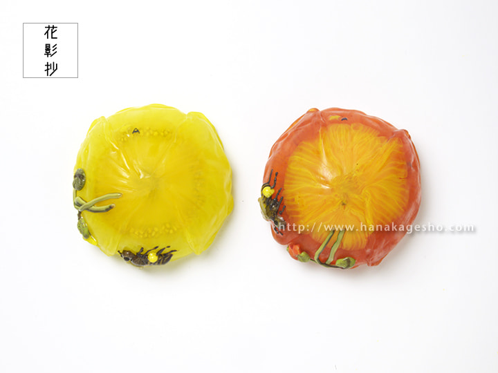 黄;径6.5 × 6.2 × 高3.4 cm 橙;径6.6 × 6.0 × 高3.4 cm