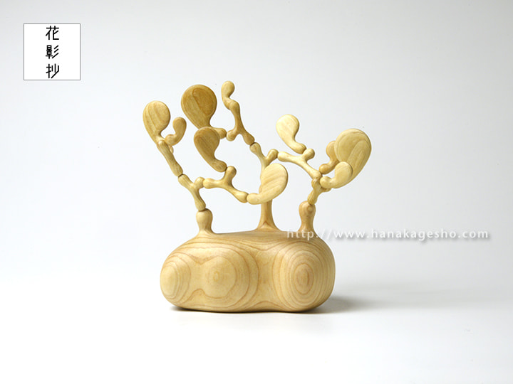 )という言葉が存在するように、「生と死」にまつわる主題自体は現代に至るまで語り尽くされているのでは?と思えるほどに多くの作家達が扱ってきた人類に共通する普遍的なテーマと言えます。そこにあって自身がテーマに扱う動機として、人類全体がどうと言うよりもまず制作行為を通して自身が抱える漠然とした死の概念を補完することとしました。死の受け止め方に対する観念を充実させるのは宗教や哲学の役割でもあると考えているのですが、決して信心深くもなく主義思想も希薄な環境で育った自分にとって日々の生活の中で死を意識させられる印象深い物と言えば桧で出来た仏壇といった形式的な仏具しか存在しませんでした。後に勉学として哲学にも触れますが、どこか当事者性に欠けるような印象しか持てず現実感に結びつかなかったと記憶しています。一連の作品はそんな精神的な寄る辺を持たない自身がどうしようもなく迫る死に対して、そのものを捉え直す事で少しでも安らかな終わりを迎えられないだろうかという試みでもあります。作品の土台にあたる部分は生物が倒れ伏している姿や折れた樹木であったり加工された肉としての姿などを抽象的に造形しており、各作品はそんな骸を模した土台から分裂する細胞のような節を広げ、周囲に記号的な形状の突起を伸ばしています。それらは土台と突起物の関係や「魂の所在」「肉の記憶」といった副題とともに複数の側面から死という事象に対する問いを投げかけます。個展「彼我の境」の開催にあたり、工藝・民藝の文脈を組みながら生物を主なモチーフとして具象的な表現で発表している根付彫刻の対比として、死の概念にアプローチする抽象的な立体造形作品を置くことで自身の表現における境界をも探るような展示としました。(カタクラ ケンタ)