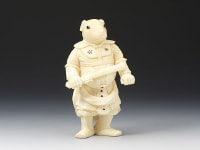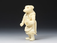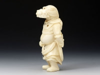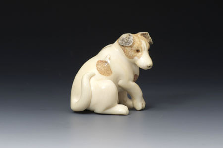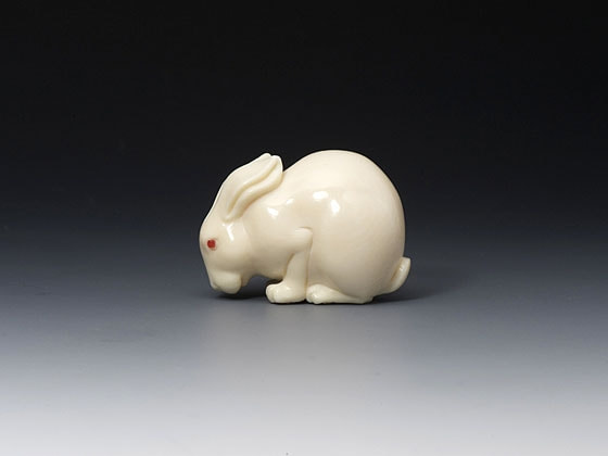 今回、いわゆるリリース作品を取り扱うことになりました、阿部賢次さんは通常、私どものギャラリーで取り扱っている作家ではなく、他のディーラーや店舗にて、現在も新作を意欲的に発表しておられる作家です。そういったことを考えると阿部さんの旧作を私たちのギャラリーで取り扱うことが可能なのか?たいへん迷う部分がありました。しかしながら、現在ほとんど機能していない「現代根付作品の二次マーケット」の問題を考えた時に、小さな企画ではありますが、このような展覧会、あるいは場所も今後は必要になってくるのではないか、という考えが次第にまとまり、この展示販売会の開催となった次第です。