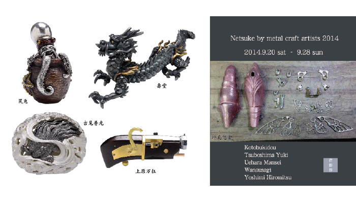 一昨年、昨年と二年連続して続けております、金属工芸の作家による根付の展覧会を今年も開催させて頂く運びとなりました。