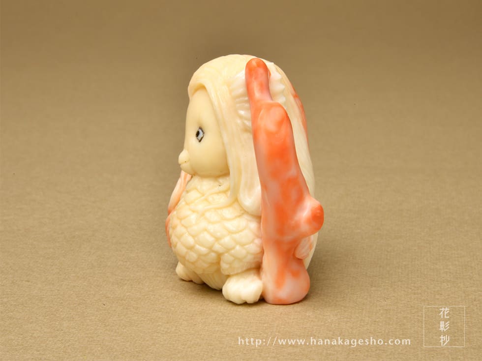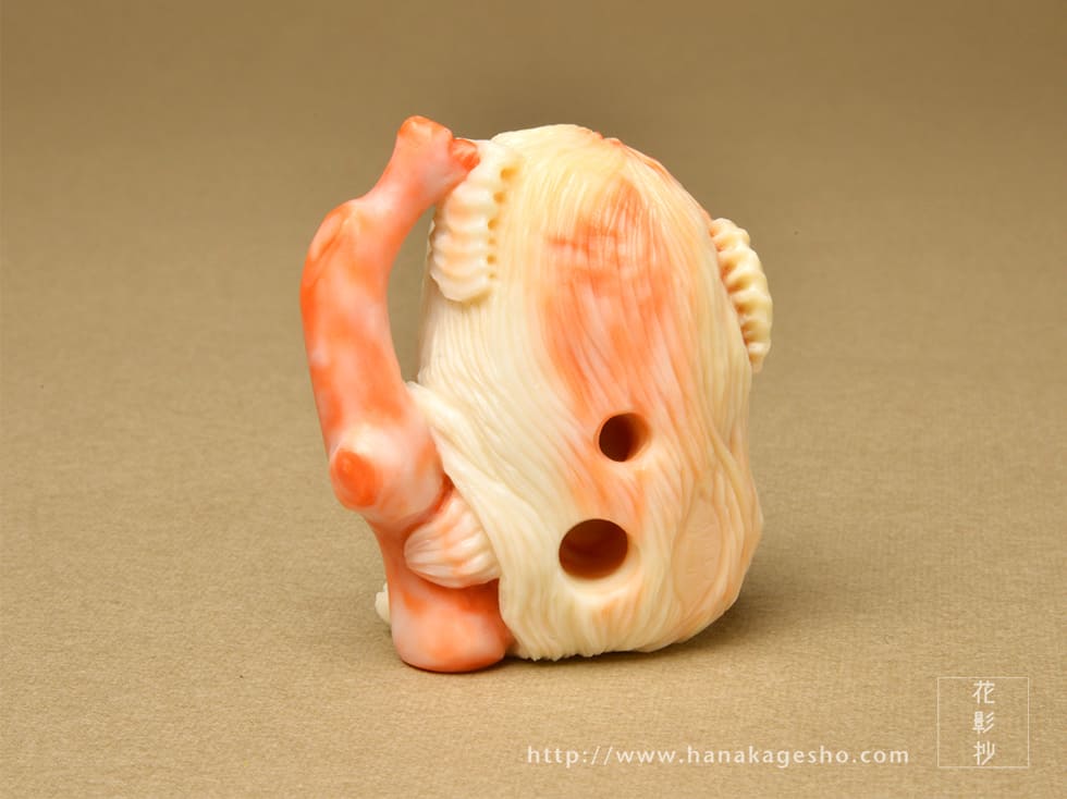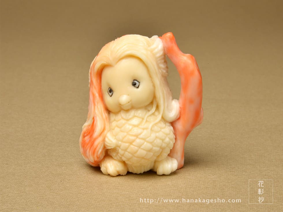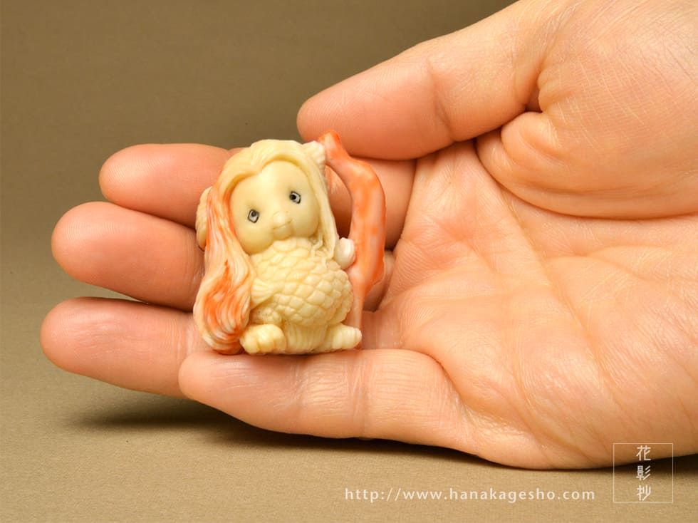 アマビエが手に持っている枝珊瑚は、深海珊瑚の白い幹から伸びた枝です。
