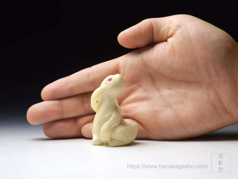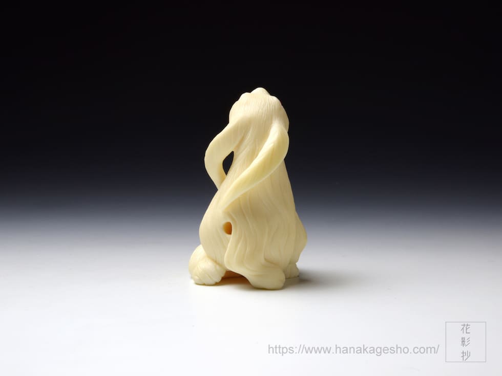 The rabbit has been connected with the moon in folklore since long ago, and depending on the region, in different ways. Because of this, I think the rabbit draws out impressions and ideas more than other animals. As I was carving this work, I looked up these folklores and tales, but this was also fun and interesting.