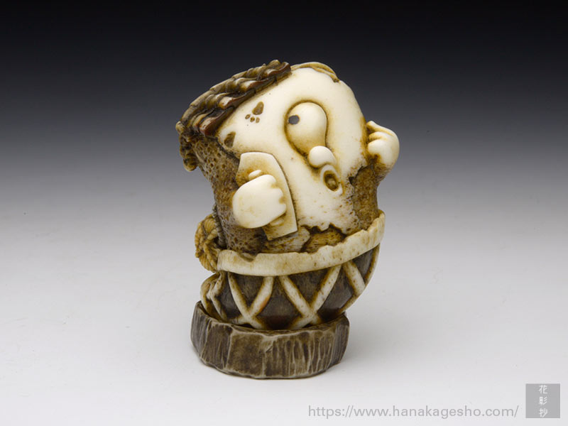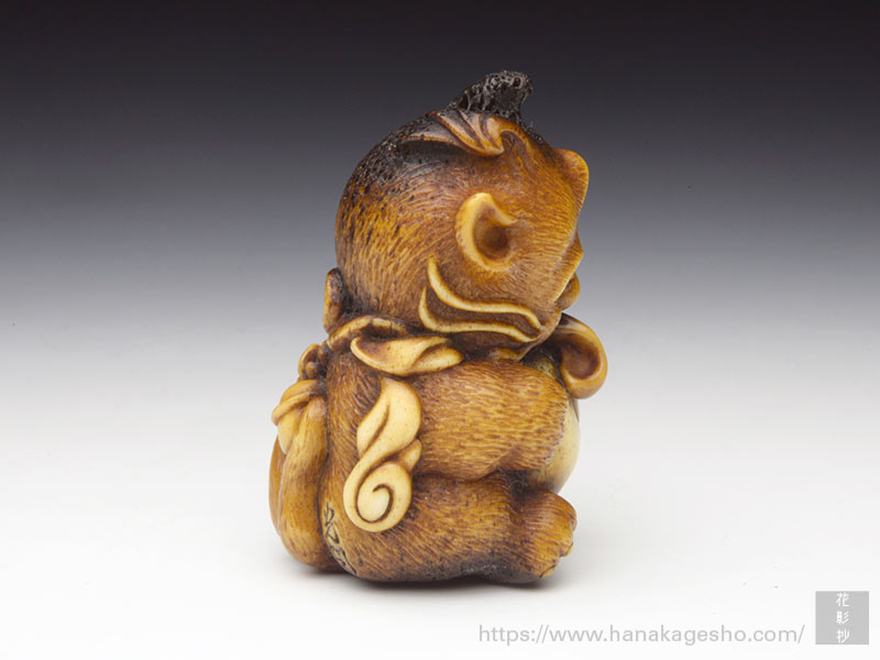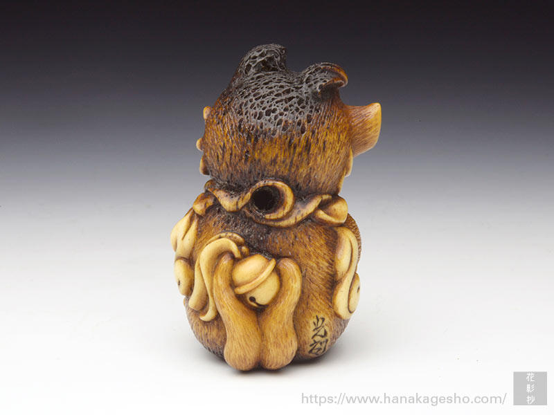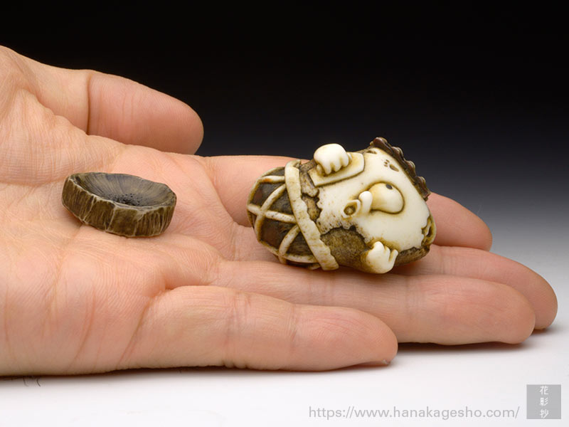 工業製品の「試作型」を製作する仕事を経て根付作家になる。「ものづくりの精神」が作品の磨きや象嵌などの仕事ぶりに見て取れるように思う。