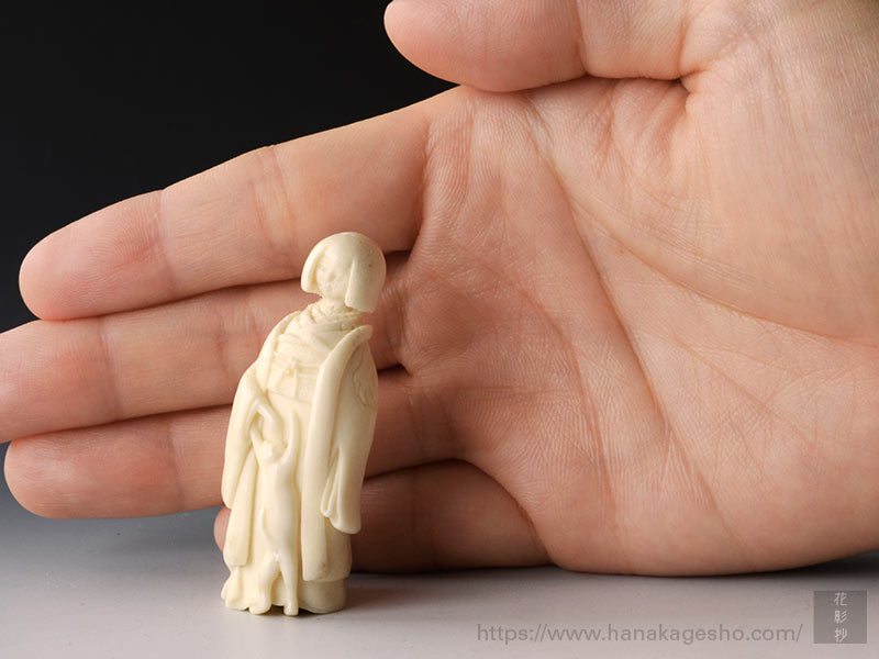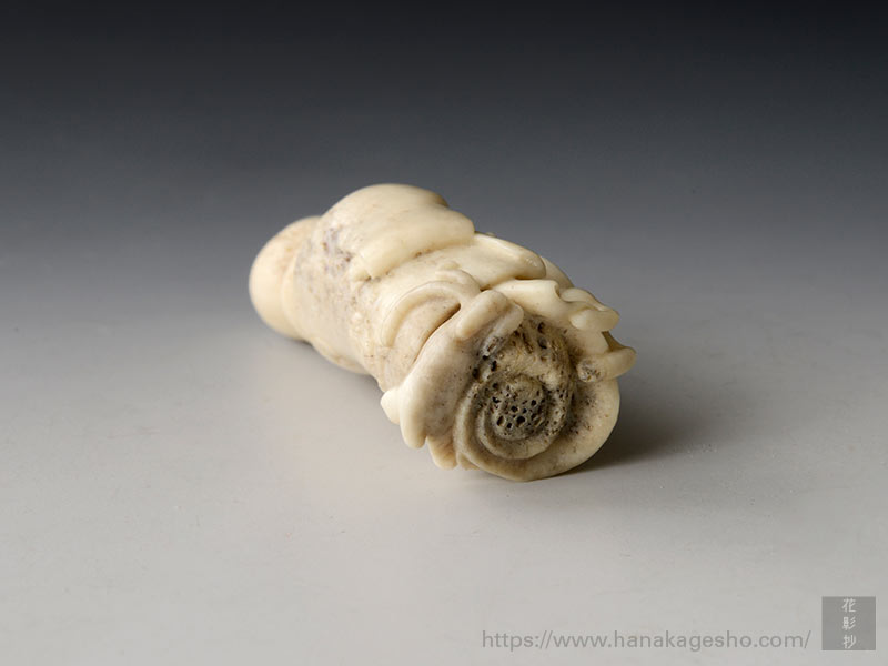 大きさ:5.4 × 2.3 × 2.2 cm 素材:鹿角 象嵌:芥子パール 制作年:令和2(2020)年