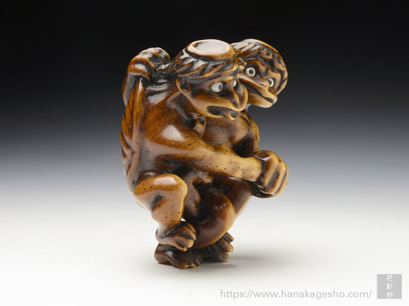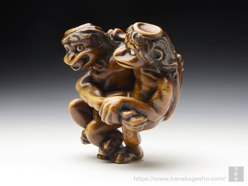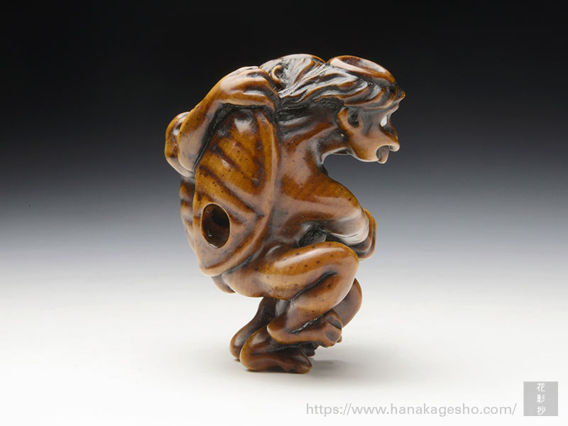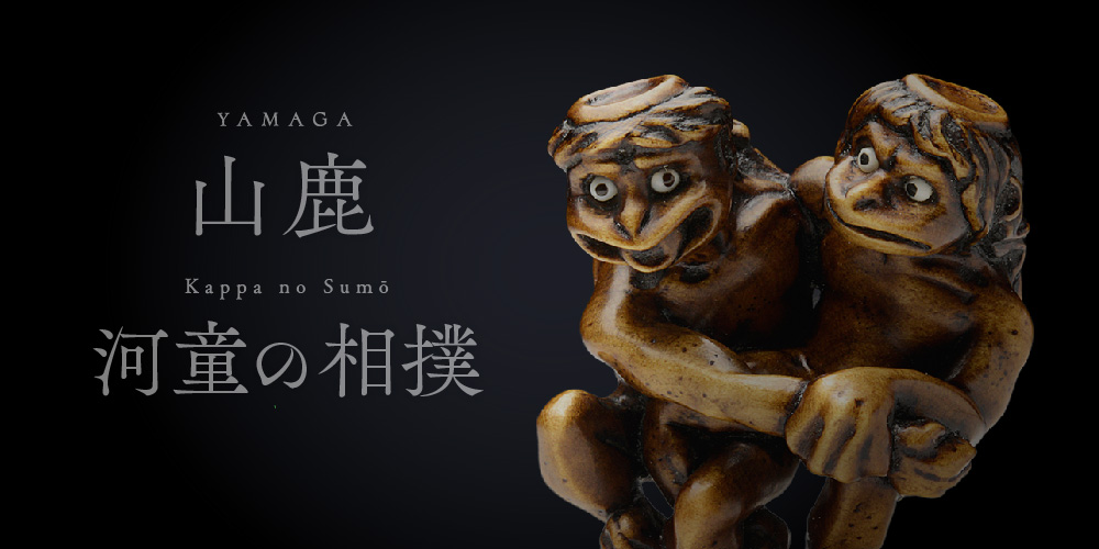 山鹿 YAMAGA 1965年 東京都出身 2008年根付制作をはじめる。 家業の印鑑店を営みながら、根付を制作する。当初、印鑑の装飾彫刻のために学び始めた。 齋藤美洲氏に短期間ではあるが手ほどきを受けた経験を持つ。 一職人として根付制作に向き合う。 地域のお祭りに長く関わっており、根付が使われる文化に日頃から親しんでいる。安心感のある丸い根付らしいものが多い。