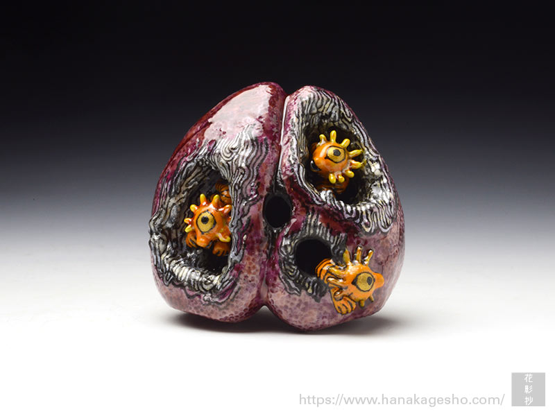 針聞書に書かれている病気を起こすと考えられた想像上の虫を参考に、新型コロナウイルスを病虫として制作しました。