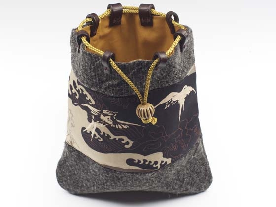 巾着(印籠型携帯電話入れ)・鱗柄に獅子図