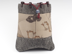 巾着・蛙(黒)/根付「反り蛙」銘:一景