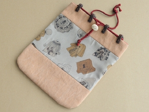 巾着(印籠型携帯電話入れ)・鱗柄に獅子図