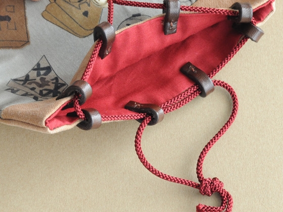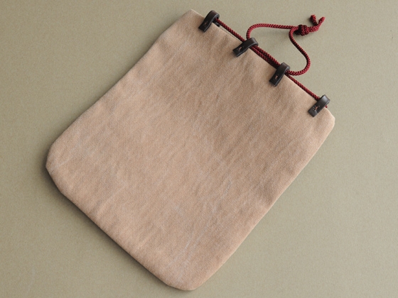 古布(絹)・綿(柿渋染め)・皮革(緒締:素材不明)