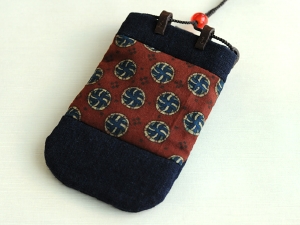 巾着(印籠型携帯電話入れ)・更紗丸紋