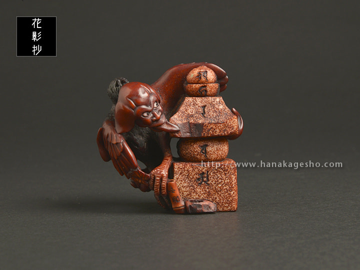 十九名の現代作家による、もののけ根付展「勿怪(もっけ)の幸い」 第四集 にて発表。漆使用。