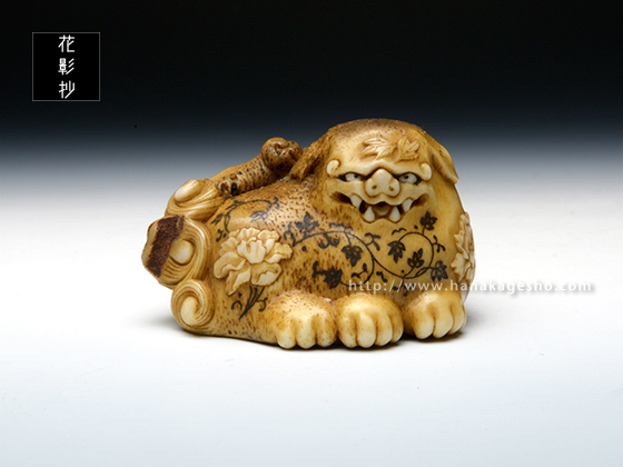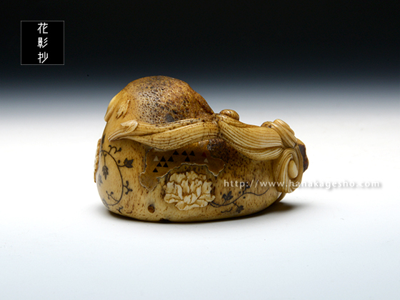 鹿角、黒檀(黒目)、夜車染め、錆、漆