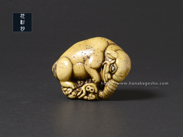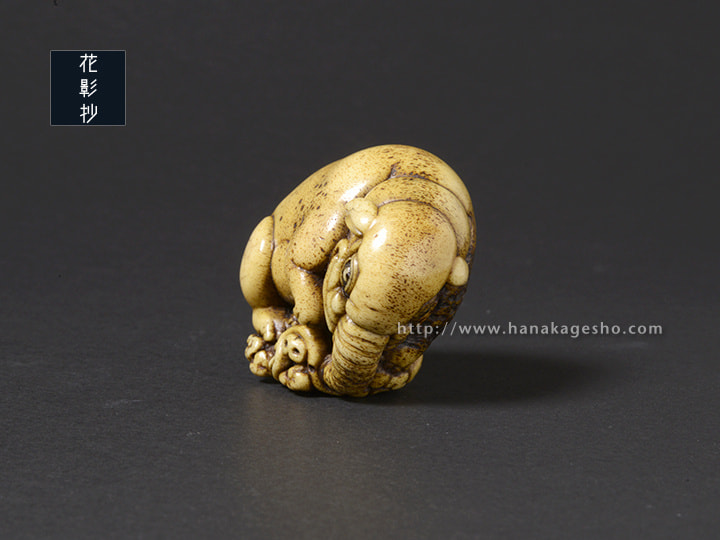 伊藤若冲「象鯨図屏風」にインスピレーションを得て、丸みの美を彫りたいと思い形にしたもの。夢に出てくる怪を喰らう守り獏。(道甫)