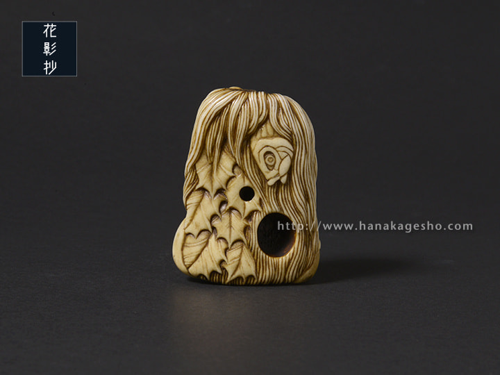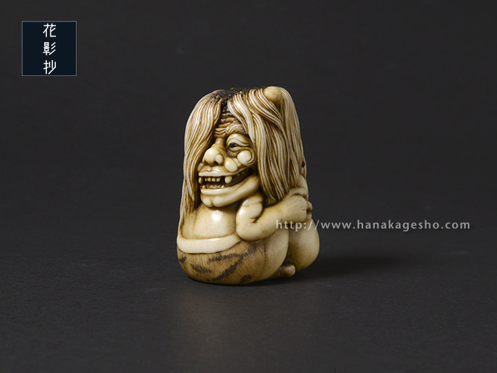 酔いの力を得れば困難でも流れ越えれる強い鬼という題材で彫りました。民芸・工芸品で西洋デッサンにない、奇妙な造形を表現しました。(道甫)