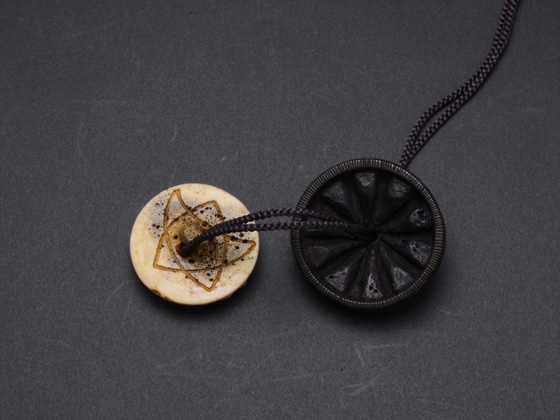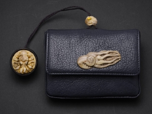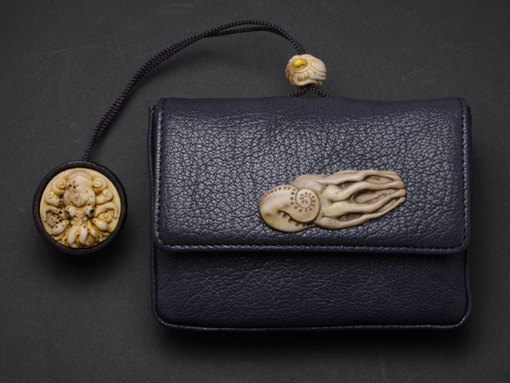 根付/鹿角、べっ甲、金箔、前飾り/鹿角、緒締/鹿角、べっ甲、金箔