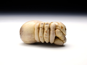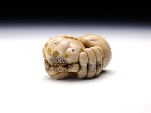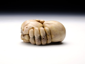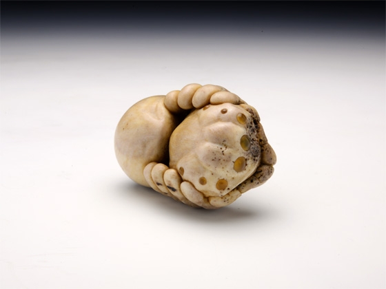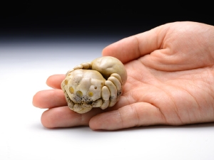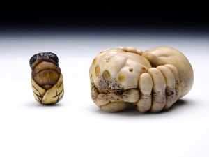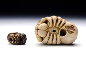 根付/5.6 × 3.8 × 2.8 cm、緒締/2.5 x H1.6 x 1.4 cm