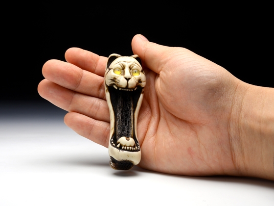 「火鼠、猫又を噛むの図」(道甫)。