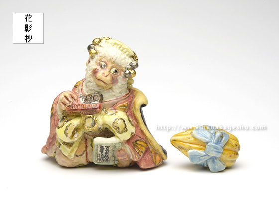 根付:4.5 × 4.5 × 3.5 cm 緒締:2.5 × 1.7 × 1.5 cm