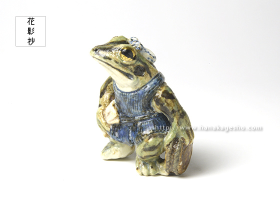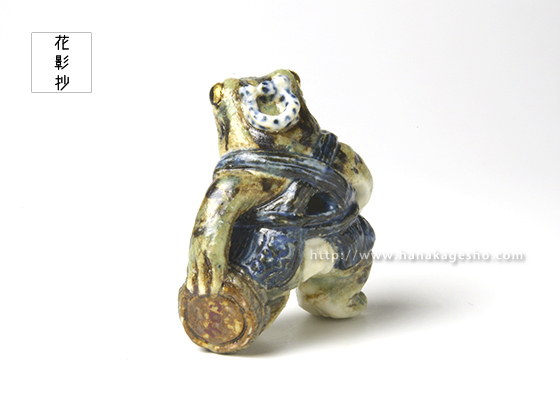 「江戸中期から銭湯で風呂焚きや男女問わず入浴者の背中を流すことを生業とした三助。ジャンプの得意なトノサマガエルの三助に壁を飛び越えてもらいます」(泉水)