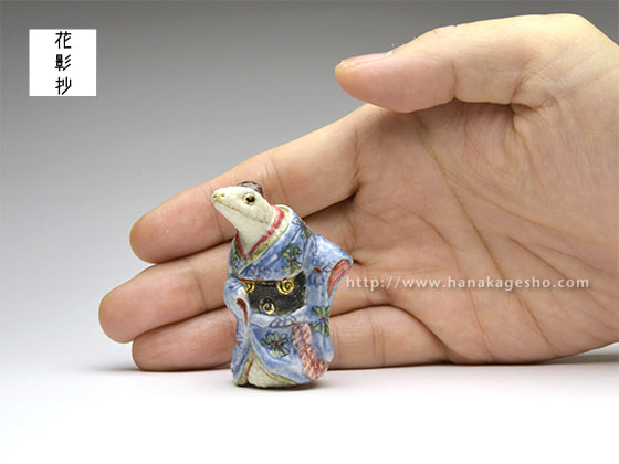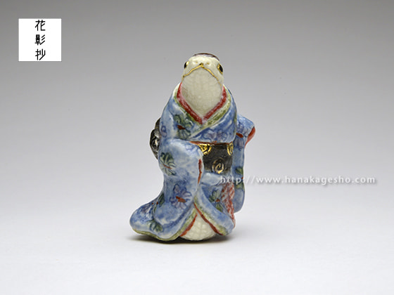 飛び抜けて容姿に優れており、1756年(宝暦6)「百千鳥娘道成寺 」で菊之丞を襲名、若女形の筆頭となりました。路考結び、路考髷、路考櫛、、、とその名のつくものが庶民の間に流行しました。道成寺にかけて白蛇に艶やかな女形を演じてもらいました。着物は路考の結綿紋、頭には紫帽子※。