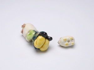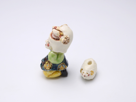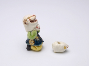 根付/2.7 × 2.3 × 高さ5.7 cm 緒締/2.5 x 1.5 x 高さ1.6 cm