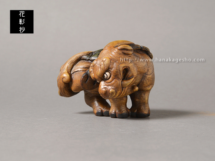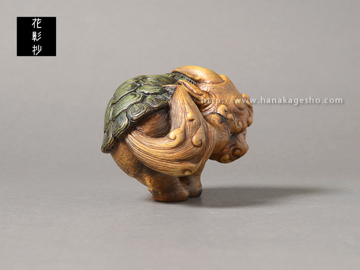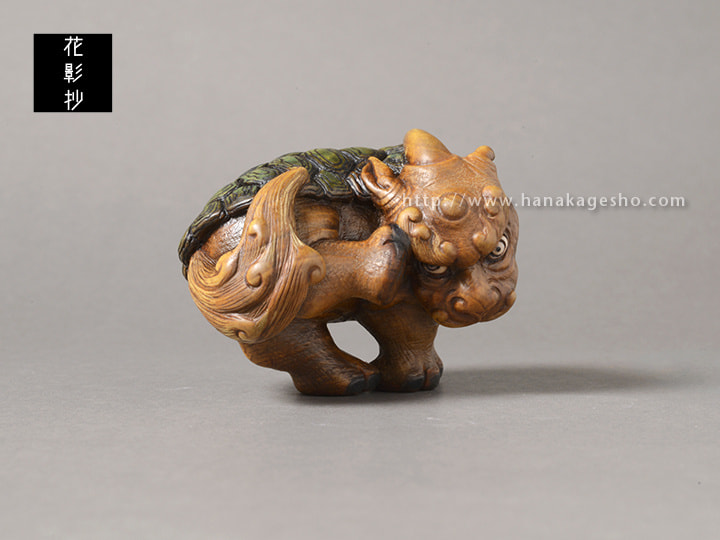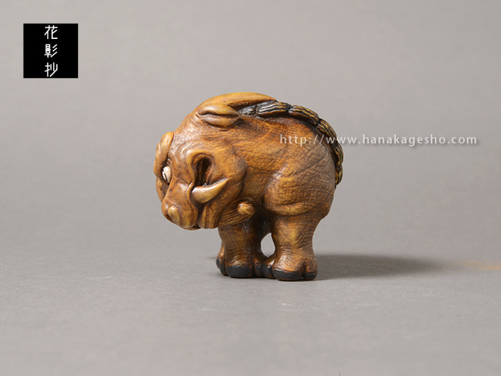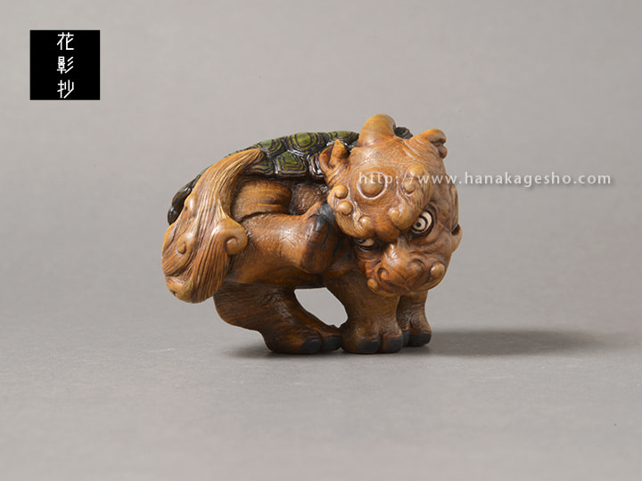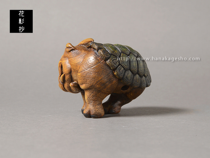 水犀は、中国古籍『山海経』に由来する神獣の姿です。中国では、彫刻や絵画として残された作品はほとんど見られません。