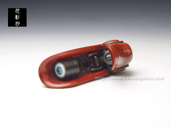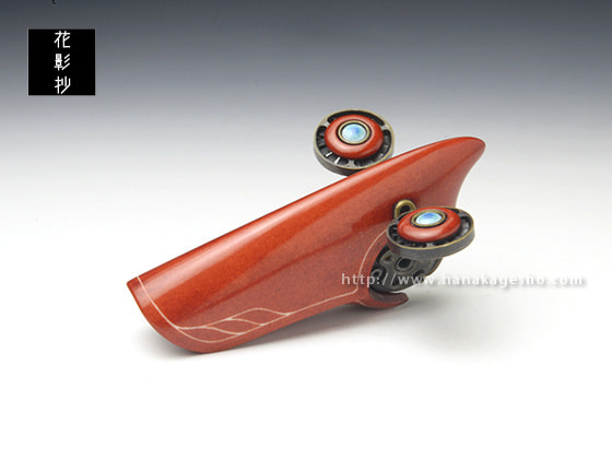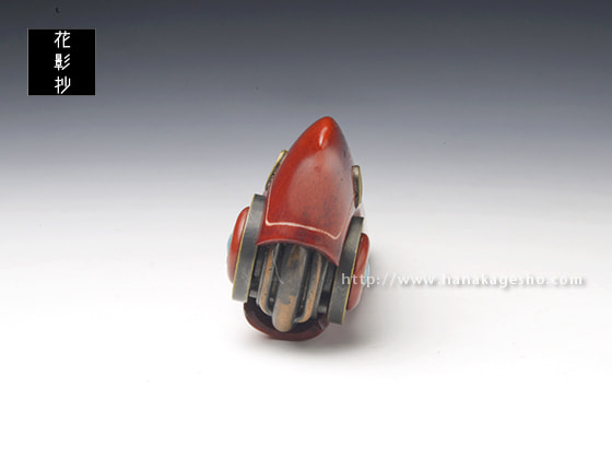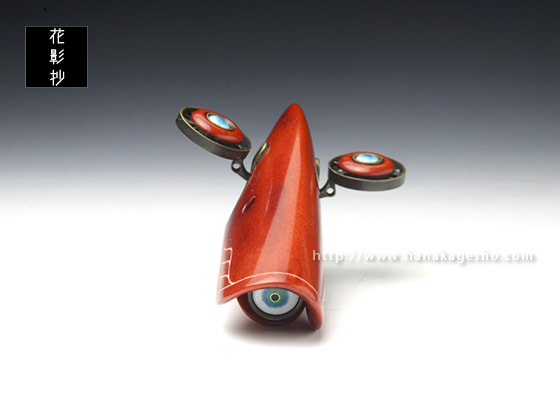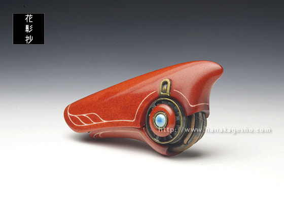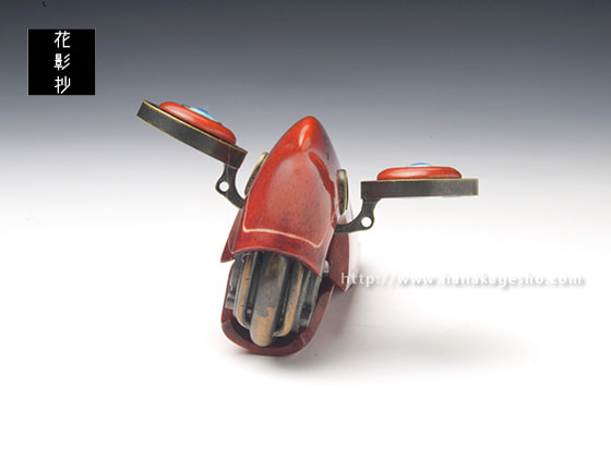 「科学技術の発達した未来で人工知能が自我を得たとしたら、それは機械に命が宿る新たな形の付喪神と言えるのではないだろうか。そんな考えをもとに、命を宿した未来のドローンを制作しました。アゴのようなパーツを開くとロックが解除され、羽を展開することが可能です」(磁佑)
