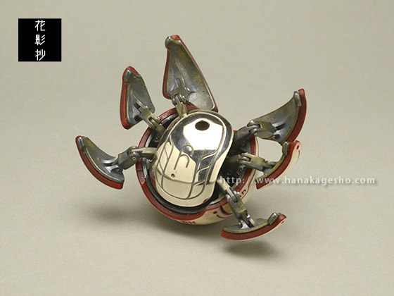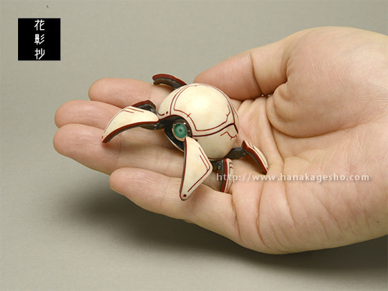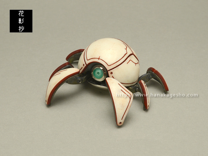 情報端末がさらに進化した未来に生まれた、自立行動する小型サポートロボットをイメージしています。ユーザーの相棒として天気予報からスケジュール管理まで幅広くこなす。その独特な形状から「カニタマ」の愛称で親しまれている。(磁佑)