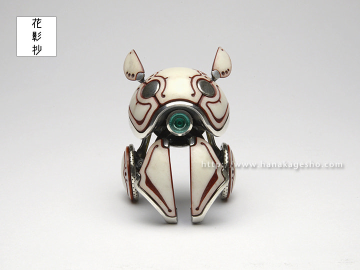 4つのタイヤで素早く移動し、耳のように見えるアンテナを使い主人と離れた場所での通信も可能です。その独特な形状から「ミミタマ」の愛称で親しまれている。(磁佑)