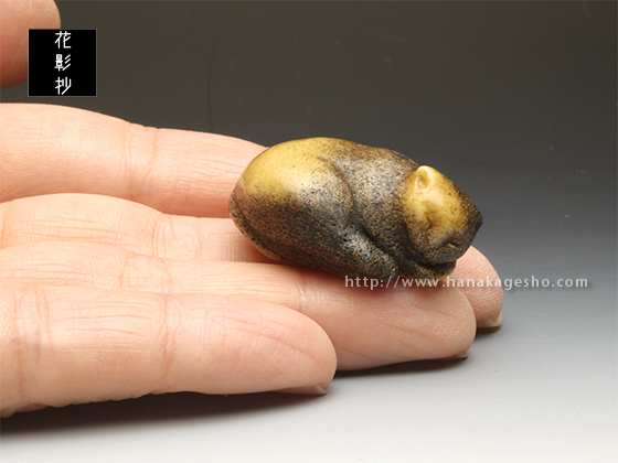 幸せを呼ぶ猫ですので、ひっかけて離さないように、かぎしっぽにしました」