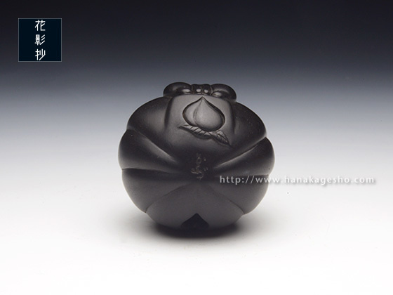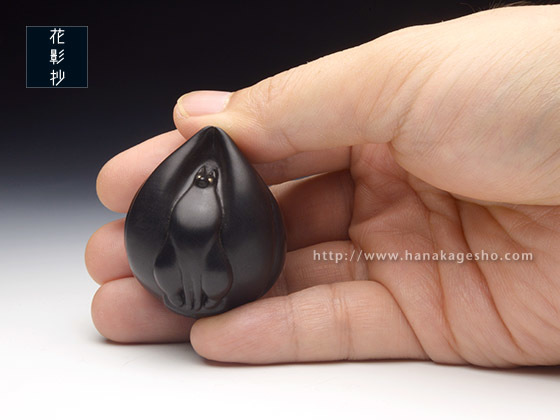 狐の妖怪と言えば九尾の狐ですが、九尾の狐の帯留を制作した際に九尾以外の本数の狐はいるのだろうか?と思い調べてみましたところ八尾の狐という尻尾が八本の謂れがある狐を見つけました。三代将軍徳川家光の夢に現れ、病気が治るとのお告げを授けられたので夢に現れた狐を鹿野探幽に描かせた。その『八尾狐図』をもとに製作しました。狐の足元には、安倍晴明、古来からの邪気を払う魔力、病の治るお告げのつながりで桃を彫りました。