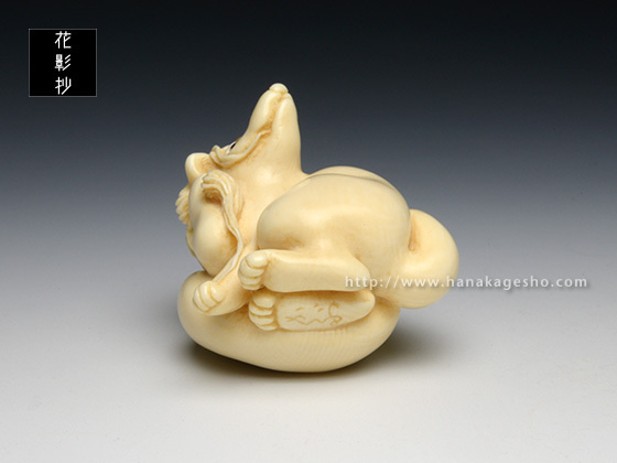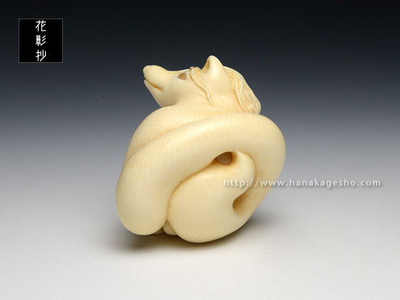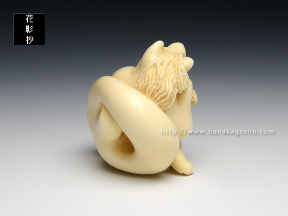 「狐は女性に化けるときに髪に見立てた水草をかぶって化けるといいます。まだ若い狐は化け慣れていないので、水面に姿を移して、一所懸命練習をしています」(かぶ)