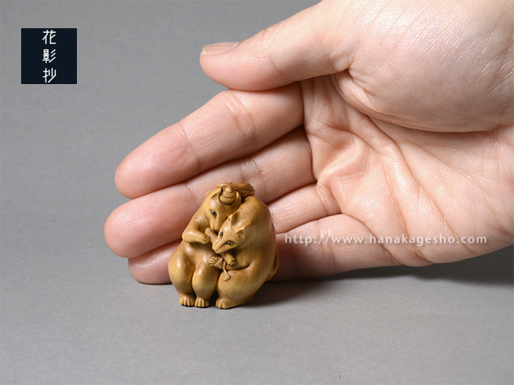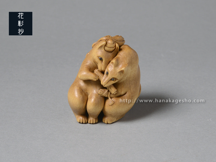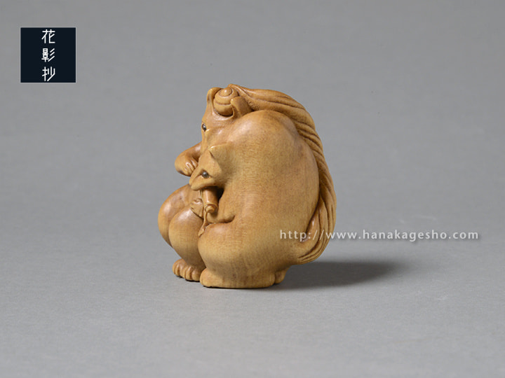 御蔵島産黄楊 象嵌:羊角、金箔、漆