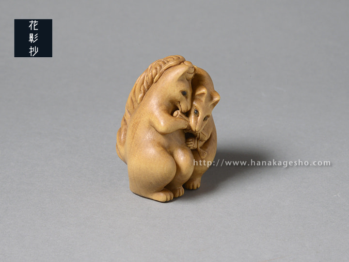 普段はお社の前で向かい会っている狐たちですが、闇夜の晩にはたまにこうして寄り添い合っているのです。(蕪)