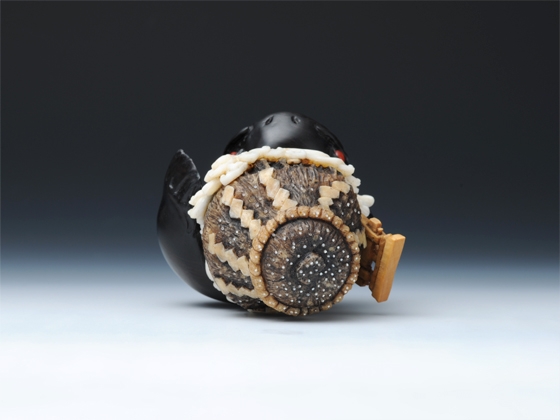 鹿角、黒檀、河馬牙、白蝶貝、血赤珊瑚、黄楊