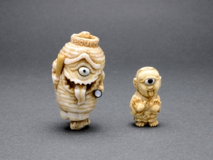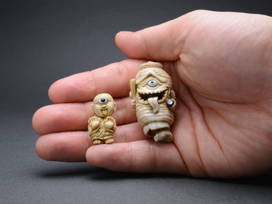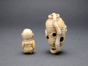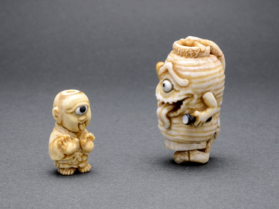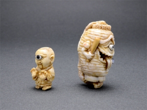 根付:H4.4 x 2.5 x 2.3 cm、緒締:2.6 x 1.4 x 1.3 cm