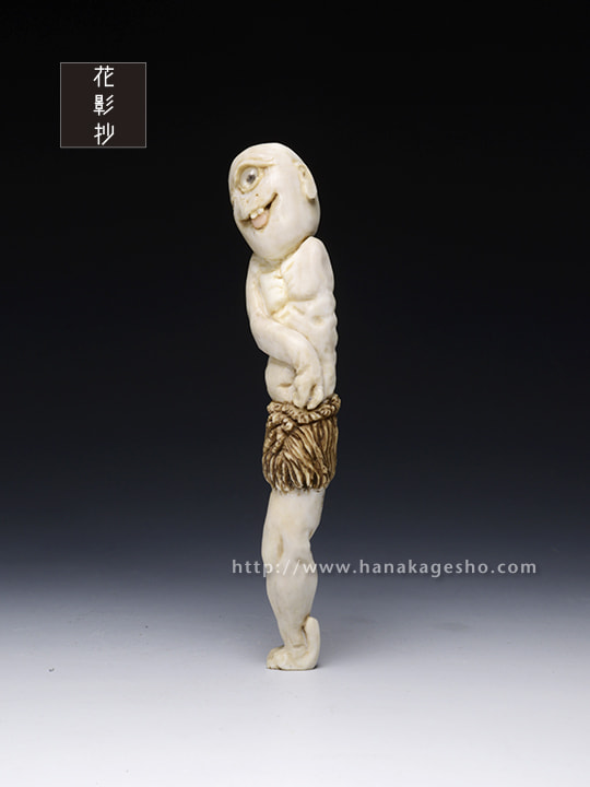 鹿角・象嵌:猪牙(歯)、珊瑚(舌)、鹿角、水牛角、水晶(目)