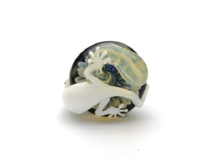 根付・Gecko on a Mushroom