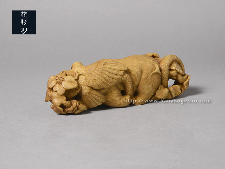 狛の故郷島根県の出雲国風土記によると神名火と呼ばれる山は4つあり、今回四種の動物を作ることに繋がりを感じた。神聖な森を想起させる名前にしようと思い、引用した。(狛) |