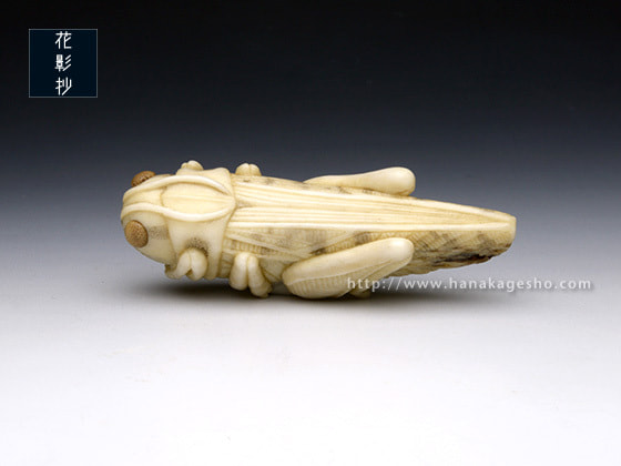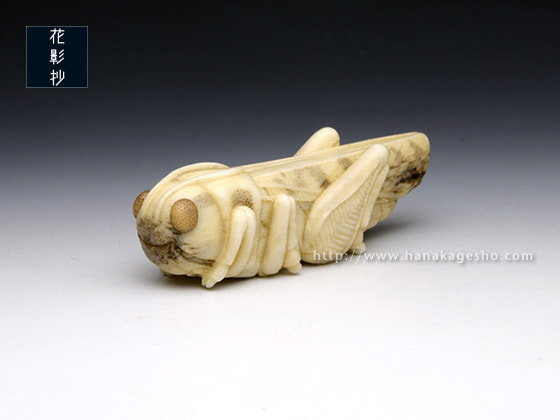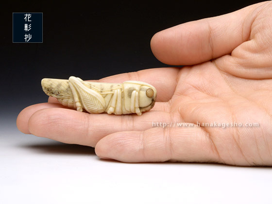 「バッタはその特徴的な外見もさることながら、特にトノサマバッタの後脚にあるV字の模様が美しいと感じます。有名な話ですが、とある特撮ヒーローのモチーフになった昆虫でもあったり…。生態を紐解くとなかなかに怖い種なのですが、可愛げを宿せるように制作しました。ぜひお手に取ってご覧ください」(カタクラケンタ)