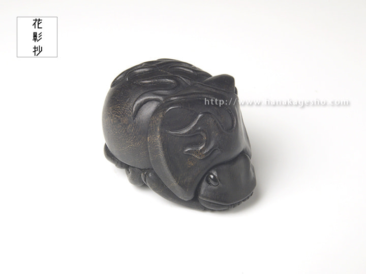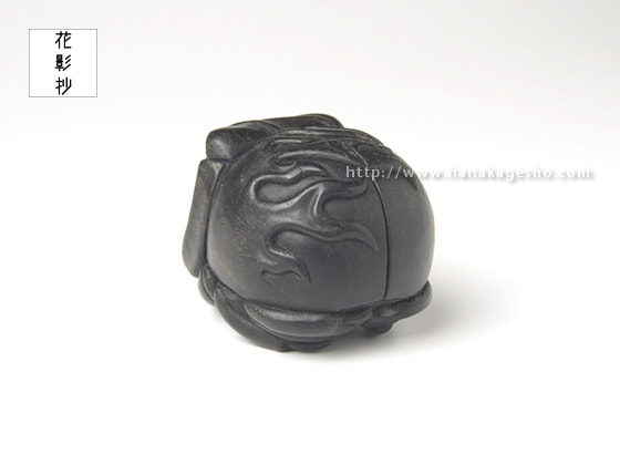 「昆虫の中にはいくつか和名に“エンマ”と名付けられた種類が存在します。由来は単純な容姿からであったり、生態が他の生き物の死に近しいからなど様々です。今回のモデルは古代エジプト教では“太陽を運ぶもの”と神聖視されたり、ここ日本では冥界の王である閻魔大王の名を宿したりとコガネムシ科の中でも人間の“見立て”と縁が深く、また我々を含めた多くの生態系を支えるために重要な生物であったりと、生と死の両方を強く感じました。奈落の炎を身に写し現世と黄泉を繋ぐ、そんな境界を感じていただければ幸いです」(カタクラケンタ)