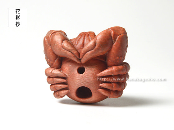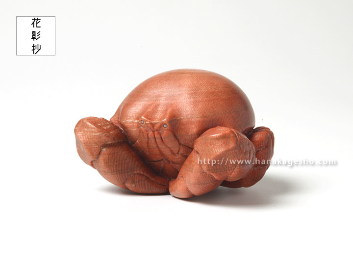 「握った拳のような見た目から名付けられたコブシガニという生き物がモチーフです。甲殻類を制作する際に鋏を合わせるような構図を作ることが多いのですが、ヒトで例えると手を合わせるような仕草を思い描いています。今作では殊更に座禅を組んでいるような、はたまた祈るような出立ちとなりました。改めて完成した作品を振り返ると「握るべきは拳ではなく掌だ」そんな言葉が頭をよぎります。」(カタクラ ケンタ)