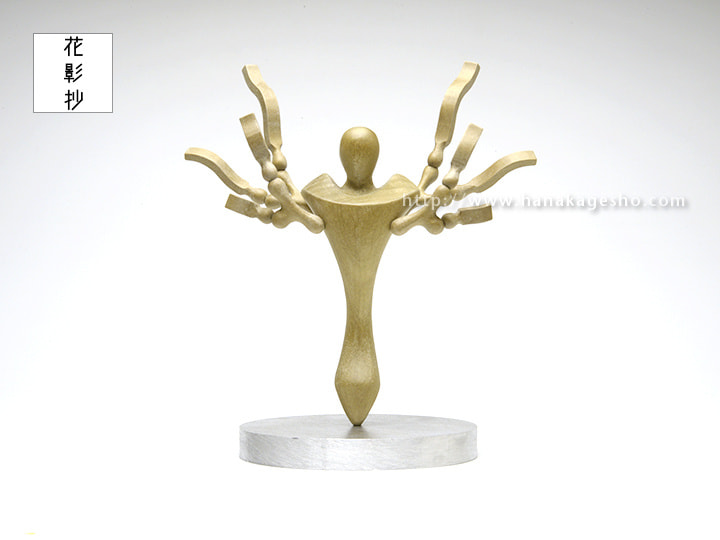 はじめに、これらの立体作品群は「宗教的な背景を持たずに祀られていると認識できる造形は可能なのか」という疑問から制作を開始した。 祀るという言葉の意味は「神としてあがめる、また、あがめて一定の場所に安置する」といったものでそもそも神霊の存在を信じていることが前提だが、日本における最も一般的に崇められている対象を思案したとき、やはり仏像が思い浮かんだ。 日本に存在する仏像の中には炎や後光の造形物を背負った像が多くあり、経典に記された逸話を根拠としてあたかも自然現象がその仏が持つ力かのような演出が成されている。 と、仏像の持つ神秘性に言及してきたが、単純に造形物として紐解いてみると、ヒト型を模した造形物+炎や雷から着想を得た造形を組み合わせるという形式で、要は不可思議な力を持ったヒトの似姿である。 古来存在する仏像から今日のアニメ文化におけるフィギュア造形でもその形式は受け継がれているが、それらは共通して宗教的もしくは架空の物語的な「背景」を持っており、その「背景」をもとに制作される偶像はそれまで言語や絵画であった情報、神秘性をより現実的に鑑賞者へ感じさせる機能を獲得している。 この “崇拝対象「〇〇」 ”シリーズは上記のような「背景」を一切持たず、形式に則り立体の構図と抽象化したヒト型、「〇〇」に入る現象を模した造形を組み合わせることによって ”祀られているっぽい偶像 “を表現した作品である。 まず、作品に対峙するとヒトのような造形物に炎や雷のような造形物がまとわりついてる様を確認し、その後作品タイトルを確認する。順序は逆でもよい。 そして「これは何かの神様や物語をモチーフにしているのか? 作者はこれらを崇めているのか? 宗教に関するテーマなのか?」というような疑問を想起させられれば、もうすでにこの作品の機能は完了したと言っていい。背景となる特別な物語は何もないがそれでも造形と短い言葉によって神秘性や奇妙さの入り口を認識させられれば成功である。 そういった奇妙さや不可解さに出会い認識しようと考えを巡らす状況に対して、その負荷から精神を守るために理由を求め納得しようとする心理メカニズムが信仰や崇拝、原始の宗教を成立させる糸口を生んできたのだろう。 科学でほとんどの事象に説明がつく現代において、それでも新たな崇拝や信仰が生まれることがあるとすれば、それは案外なんの背景を持たない “祀られているっぽい偶像 ”がきっかけになるのかもしれない。(カタクラ ケンタ) |